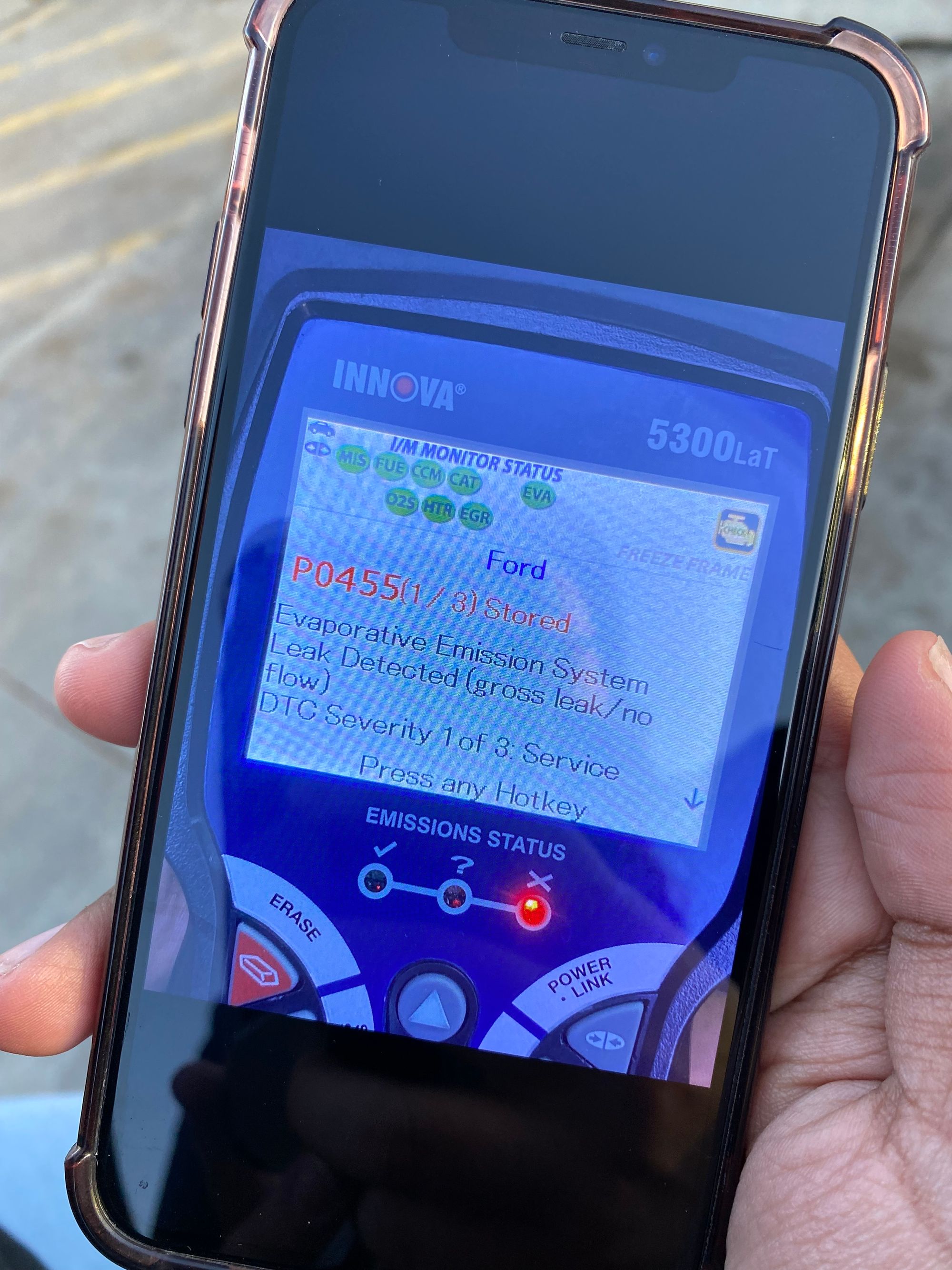 I need to take an emissions test for my car. The check engine light was on and I went and read the code at O'Reilly Auto Parts Store months ago. Most every auto parts store franchise will offer a free service where the clerk walks out to your car and uses an OBD2 scanner to read what code the check engine is throwing. I took a picture of the code and forgot about it:
