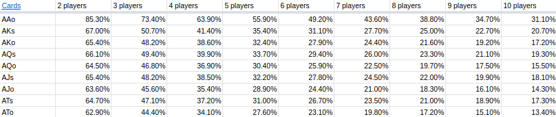 The goal of this project is to be able to eventually multi-table online poker and get prompts of when a table has been dealt a good starting hand. What I have in my head is a heads up display that lays on-top of the tables. Gives relevant starting chance and color based text on an arbitrary cutoff determined by the user.