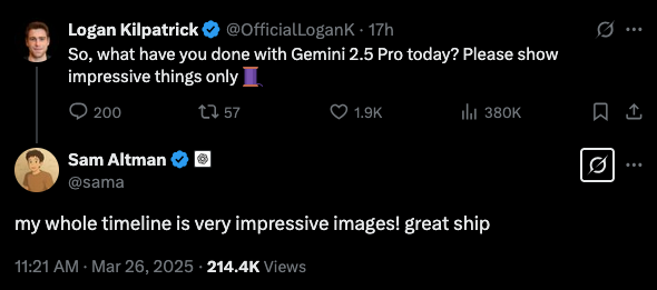 For reference, Logan works at Google on Gemini and Sam works on OpenAI.